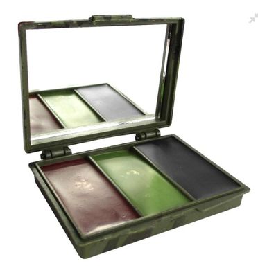 Strong plastic box with mirror and 3 different colours (brown, green, black). Camouflage your face, neck, and hands in stripes or patterns to suit your environment. Perfect for paintball, survival, hunting and even fancy dress and kids parties.