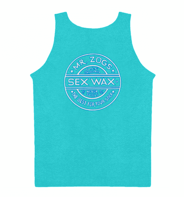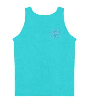 "Sexwax - Pinstripe design with outlined elements of Classic Sexwax circular logo printed front and back. This is another extremely popular Retro design from Sexwax! Loose fit 6 oz. 100% Cotton Tank Top.